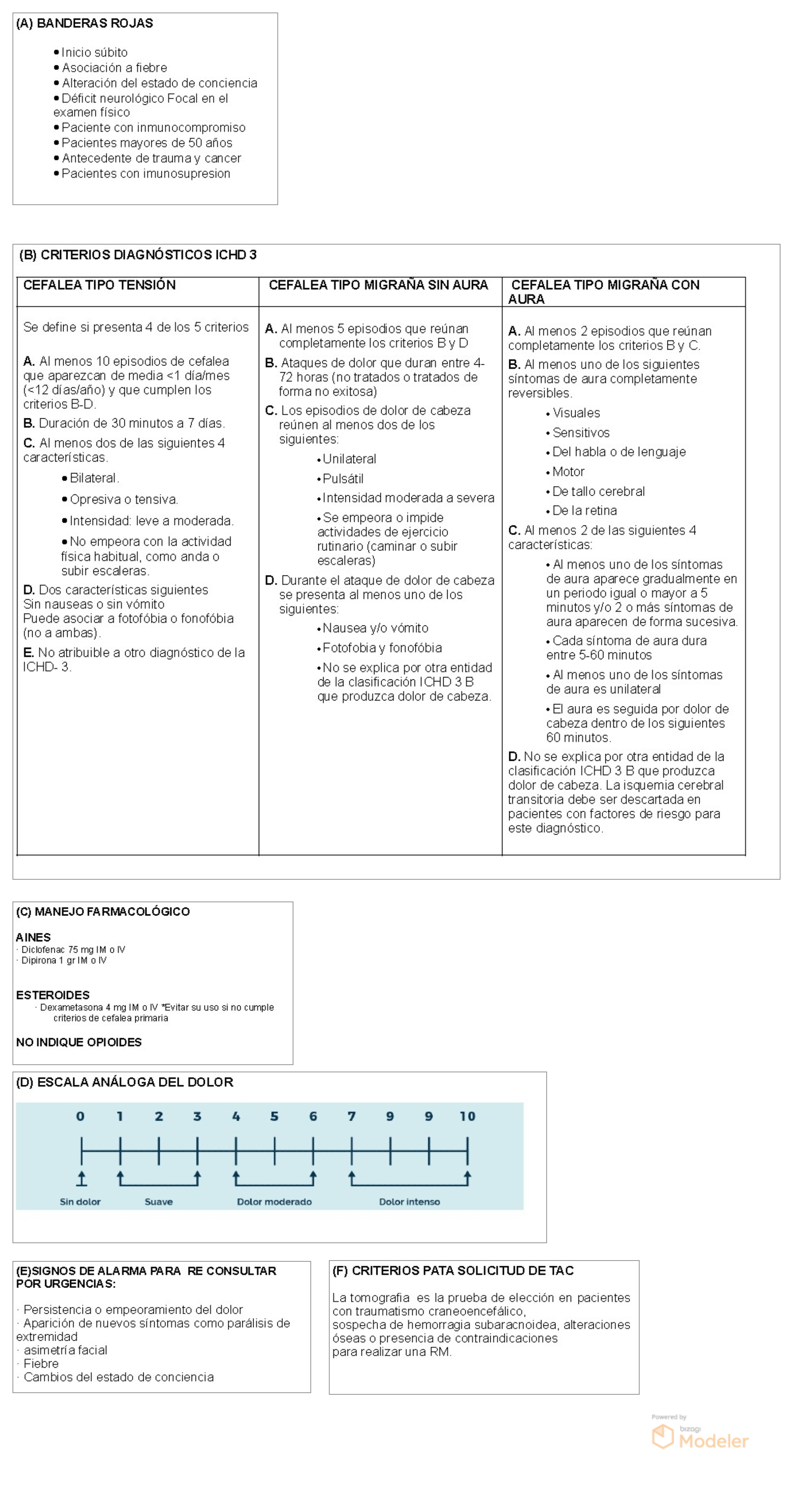 - Conozca la Guía de Práctica Clínica Institucional adaptada en Almera https://sgi.almeraim.com/sgi/index.php?conid=sgimederi&clean=t&Itemid=340. Sociedad Española de Neurología. Manual de práctica clínica en cefaleas: Recomendaciones diagnóstico-terapéuticas de la Sociedad Española de Neurología 2020*. Madrid: Ediciones SEN; 2020.
