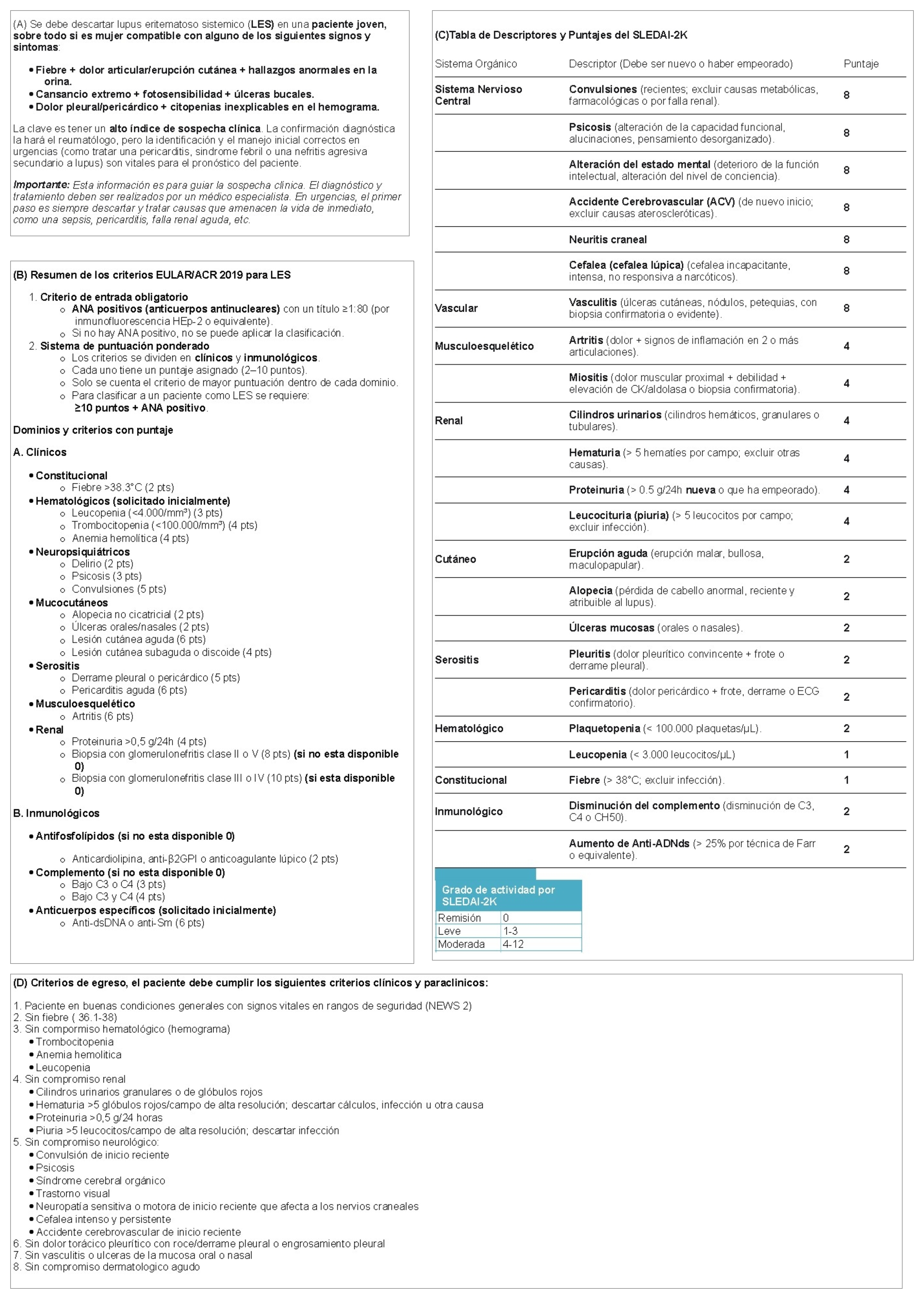 - Conozca la Guía de Práctica Clínica Institucional adaptada en Almera https://sgi.almeraim.com/sgi/index.php?conid=sgimederi&clean=t&Itemid=340. Aringer M, Costenbader K, Daikh D, Brinks R, Mosca M, Ramsey-Goldman R, et al. 2019 European League Against Rheumatism/American College of Rheumatology Classification Criteria for Systemic Lupus Erythematosus.