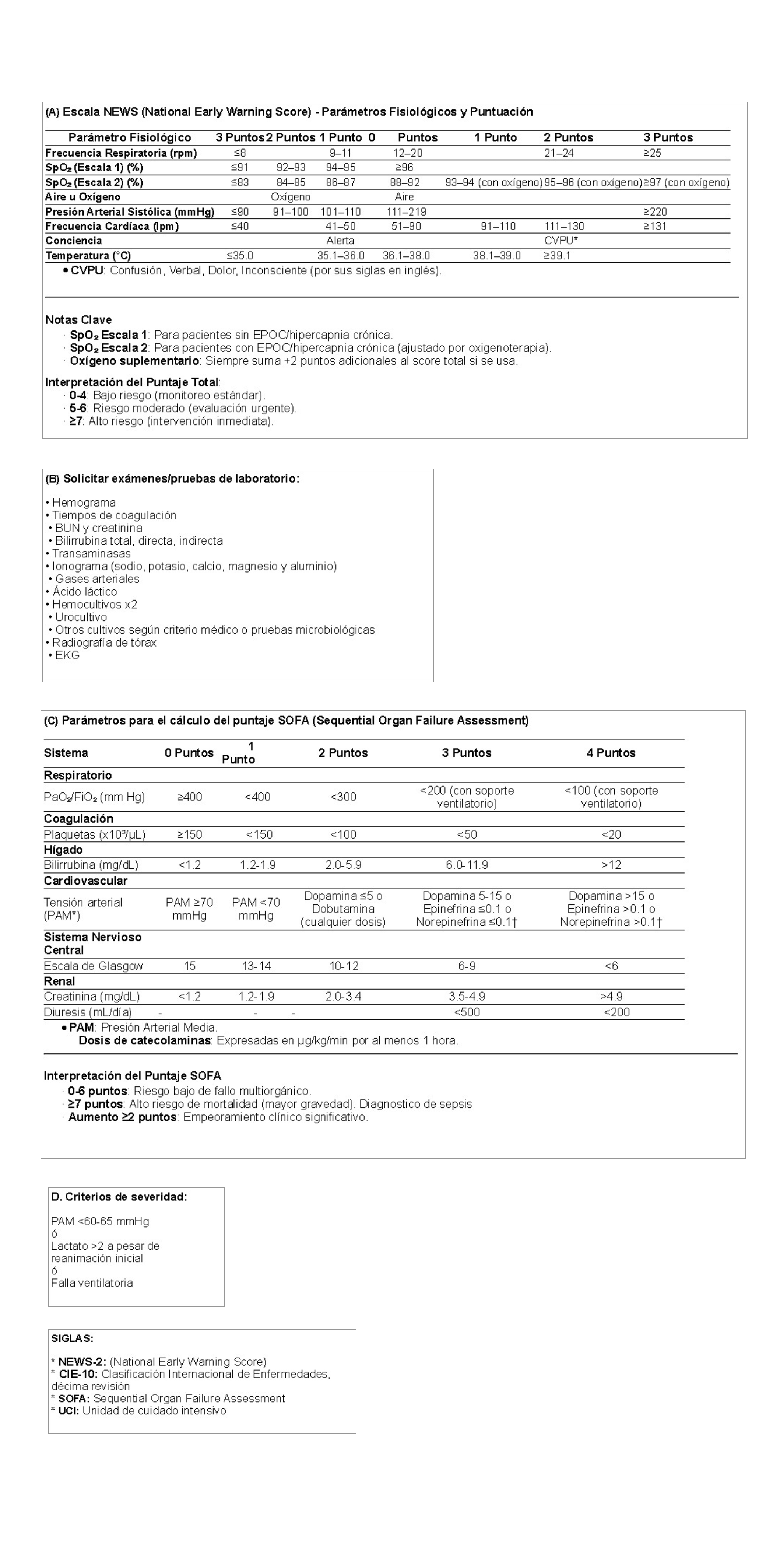 1. Conozca la Guía de Práctica Clínica Institucional adaptada en Almera https://sgi.almeraim.com/sgi/index.php?conid=sgimederi&clean=t&Itemid=340 : Evans, L., Rhodes, A., Alhazzani, W., Antonelli, M., Coopersmith, C. M., French, C., … & Levy, M. (2021). Surviving sepsis campaign: international guidelines for management of sepsis and septic shock 2021. Critical care medicine, 49(11), e1063-e1143.